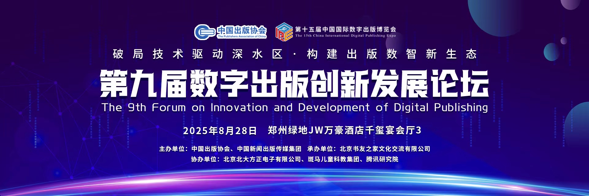 第九届数字出版创新发展论坛举办时间调整为2025年8月28日上午9:00—12:00,举办地点为郑州绿地万豪酒店(河南省郑州市金水区商务中央公园2号千玺广?。?。
